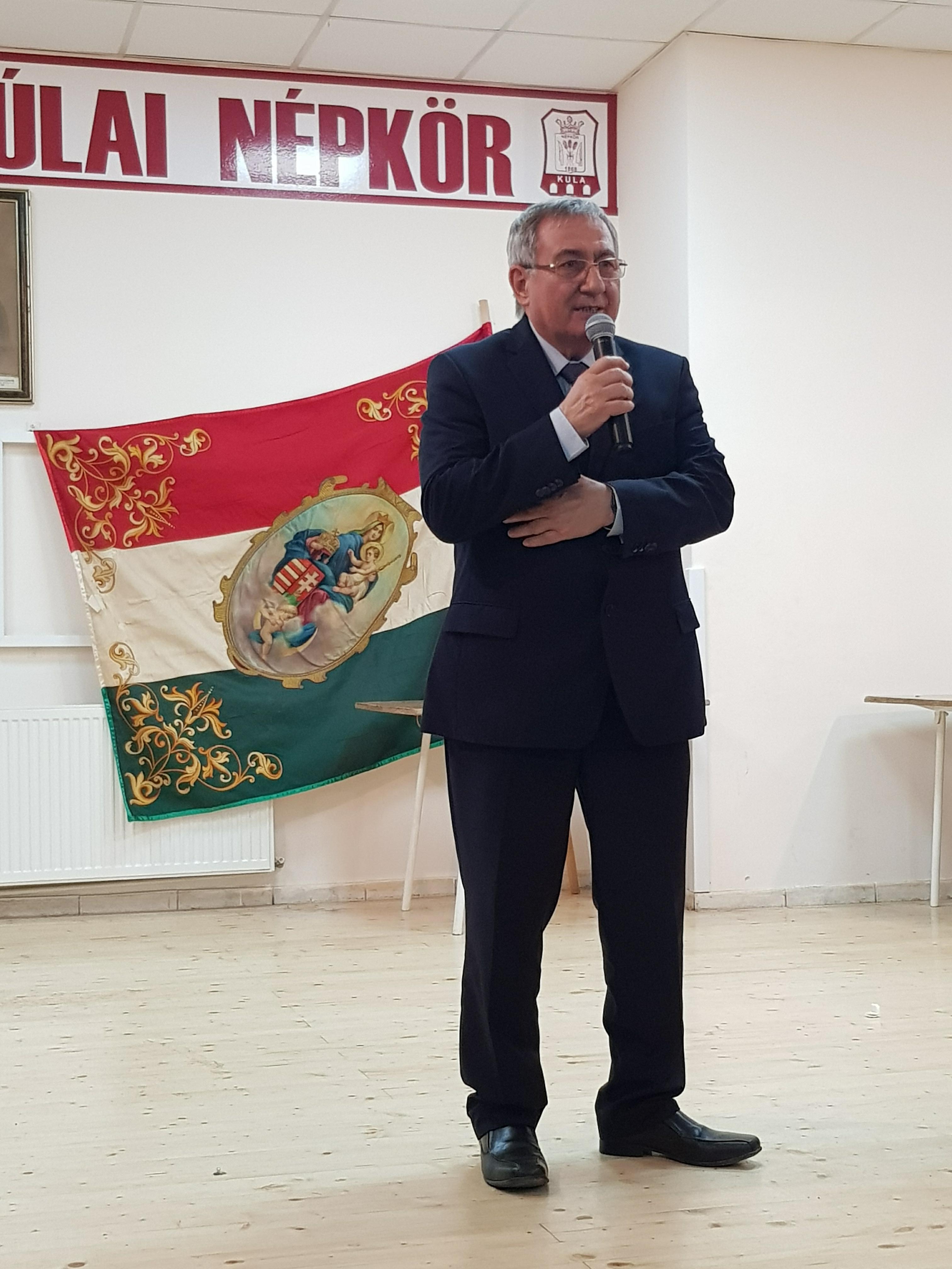 Valka Károly kúlai alpolgármester és a Népkör alelnöke a kör történetére visszatekintve elmondta, hogy a második otthonukat jelenti a kúlaiaknak a Népkör, mely 1868. február 2-án, az akkor többségiben magyarlakta Kúla település plébánosa, Szakácsy Sándor kezdeményezésére alakult meg, ma a Népkör Magyar Művelődési Központ nevet viseli és 150 aktív tagot számlál. Meggyőződéssel mondta, hogy az alapító plébános most büszkén tekint le odafentről a 150. évfordulón az egybegyűltekre. Az értékek megőrzését nevezte a kulturális egyesület legfontosabb feladatának.