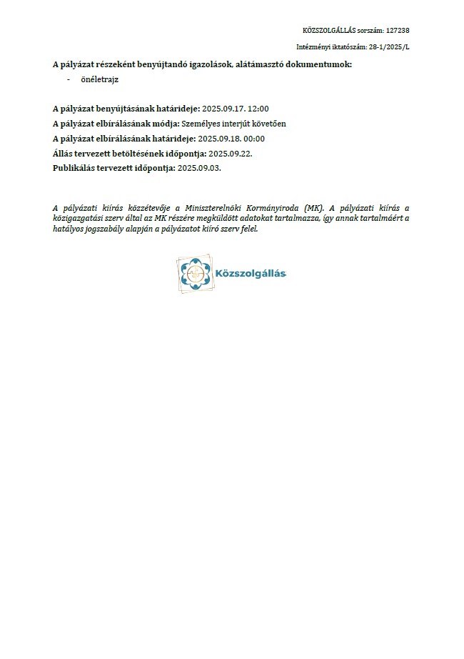A pályázati kiírással kapcsolatosan további információt Varga Eszter nyújt, a 06/78601-311 -os telefonszámon.