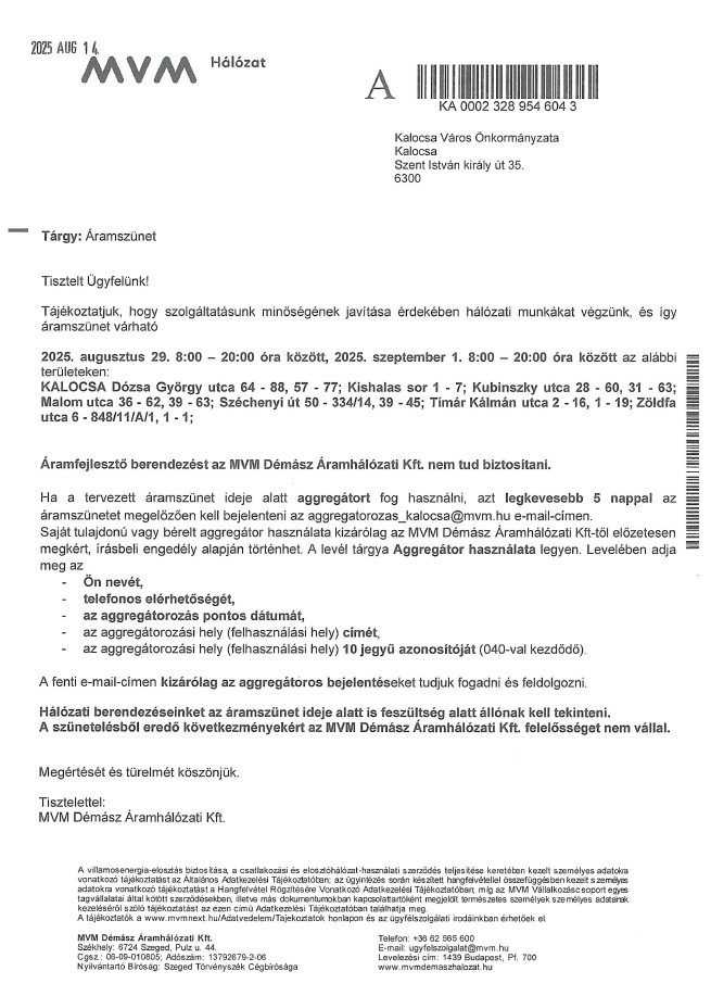 ÁRAMSZÜNET VÁRHATÓ