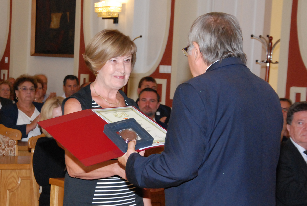 Kalocsa Város Polgármesterének Kitüntető Díját vette át Korsós Lajosné pedagógus a városban több évtizedes elismert oktató, nevelő és szervező munkája elismeréseként (laudáció).