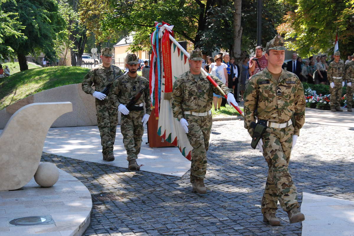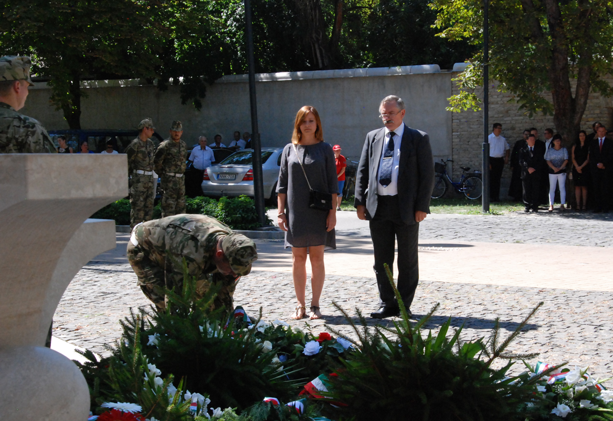 A Kecskeméti Magyar Honvédség 59. Szentgyörgyi Dezső Repülőbázis díszőrsége felvonulása után Lakatosné Jambrik Ibolya Sík Sándor: Megértettem, hogy kenyérnek születtem című versét mondta el.