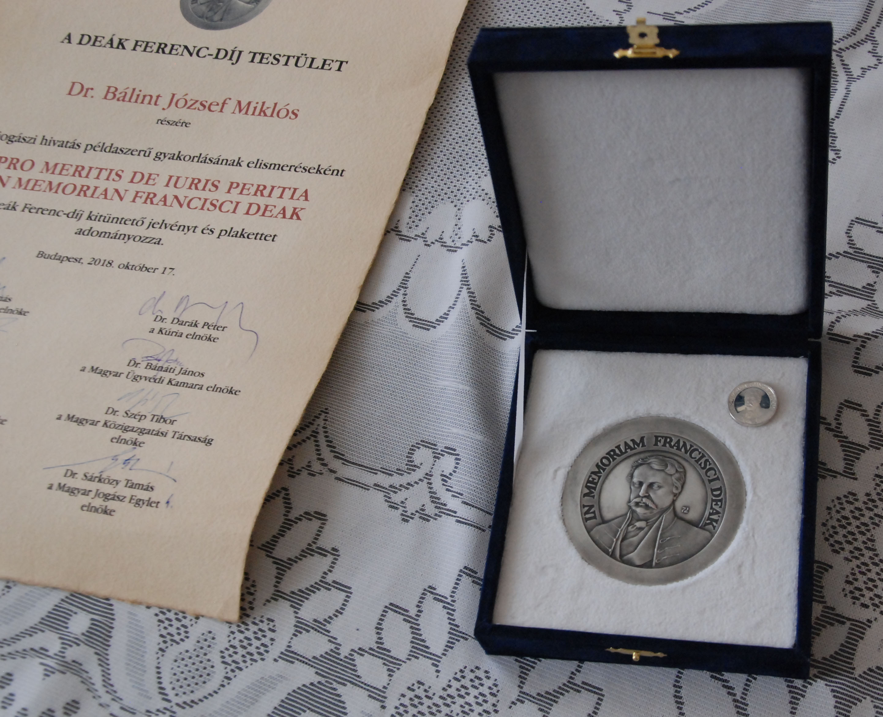 Több évtizedes közigazgatási szolgálatára, kiemelkedő szakmai közéleti és tudományos tevékenységére figyelemmel a Deák Ferenc-díj dr. Bálint József polgármester úr személyében méltó kitüntetetthez kerül.”