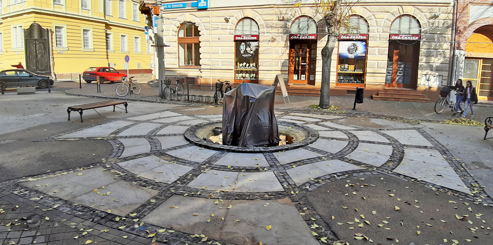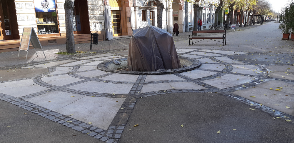 A Szent István király út sétálóutcai szakaszán lévő díszkutat körülölelő mészkőburkolat elhasználódott olyan mértékben, hogy nem lett volna elég a hiánypótlás, részenkénti javítás, hanem komolyabb felújításra szorult.