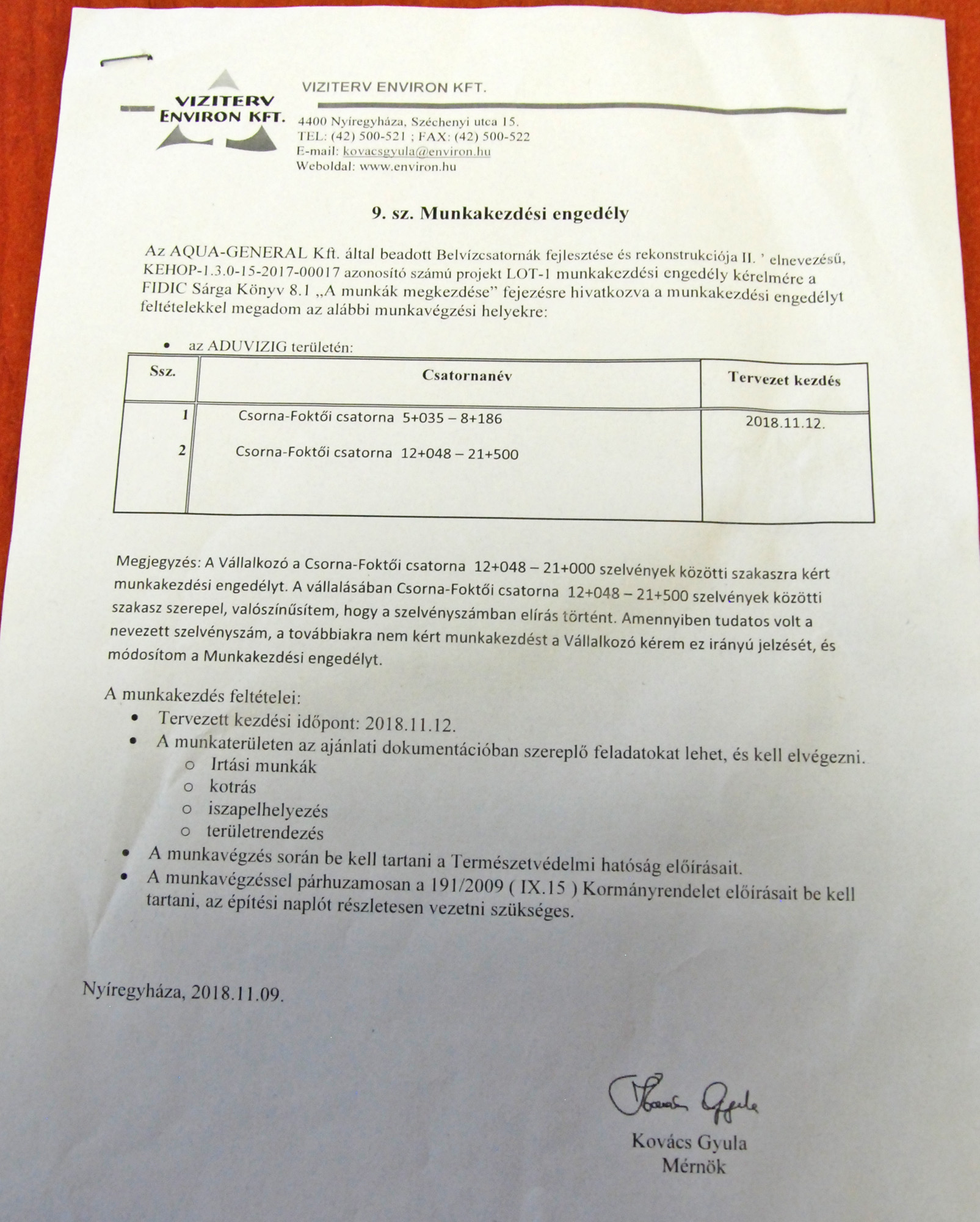 Utánakérdeztünk, és a Vízügy Kalocsai Szakaszmérnökségén Balaskó Szilvia szakaszmérnöktől azt az információt kaptuk, hogy az Országos Vízügyi Főigazgatóság KEHOP 1.3.0-15-2017-00017 azonosítási számú projektje zajlik jelenleg, ami központi projekt, számos csatorna rendbetétele foglaltatik benne, a kalocsai szakaszmérnökség területéről is több szakasz, közöttük ez a rész is.