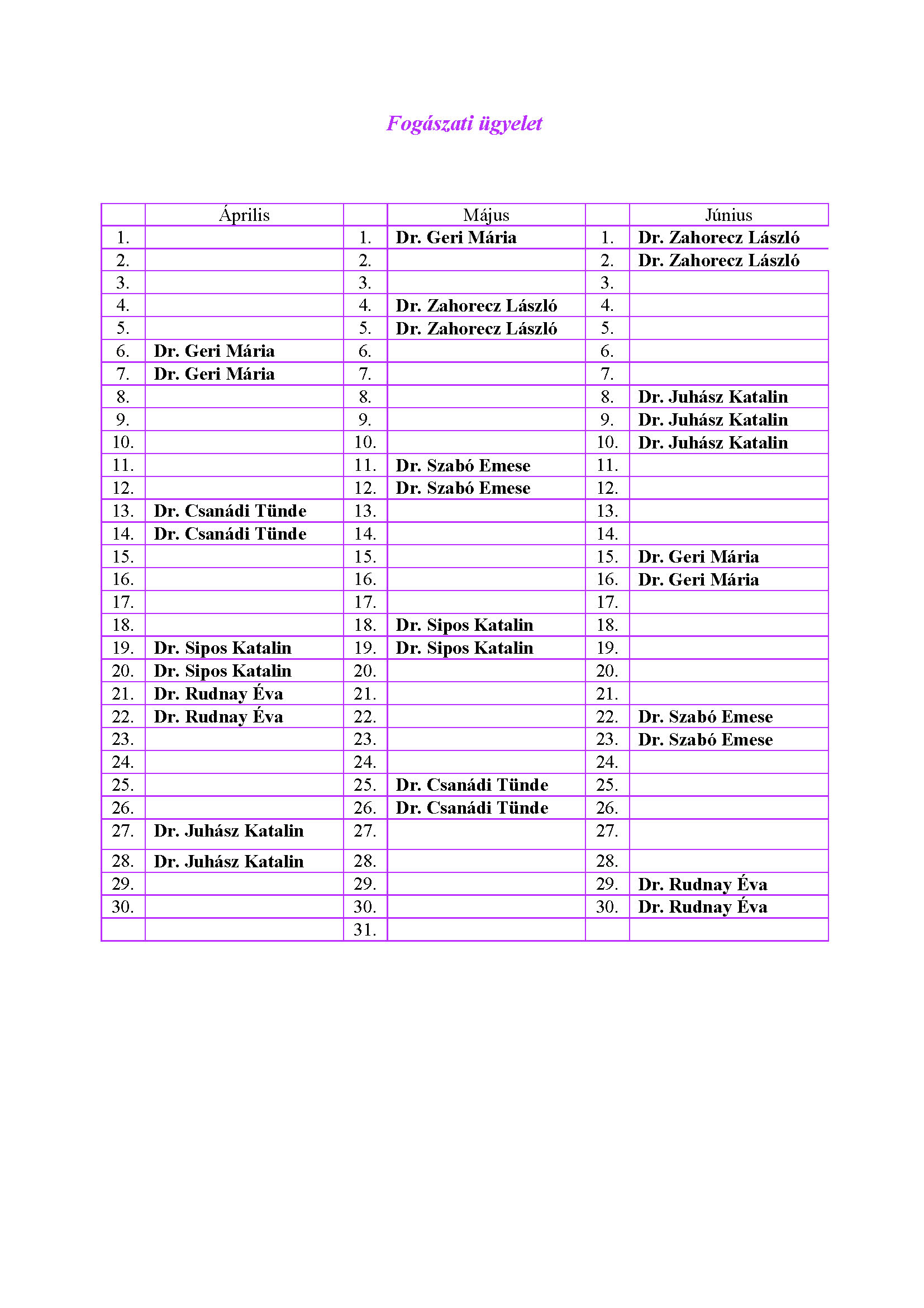 Fogászati ügyelet Kalocsán 2019. április-június 2019. április 15. Kalocsa város 2019. 2. negyedévi fogászati ügyeleti beosztásáról az alábbiakban adunk tájékoztatást: