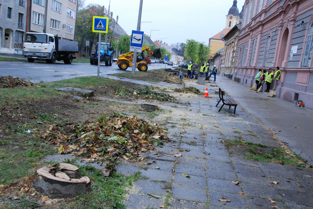 Október 30-i nappal az Esze Tamás utca – Szentháromság tér közötti szakaszon is elkezdődik a fakivágás és a területelőkészítés a fásításhoz.