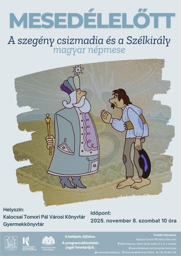 November 8. szombaton délelőtt 10 órától a kicsiket repítik el egy magyar népmese szárnyán a Szélkirályig, ezzel párhuzamosan nyílt nap lesz ismét a Kalocsai Kutyamenhelyen, délután fél4ig lesz mód és lehetőség kutyust simogatni, sétáltani, esetleg hazavinni!