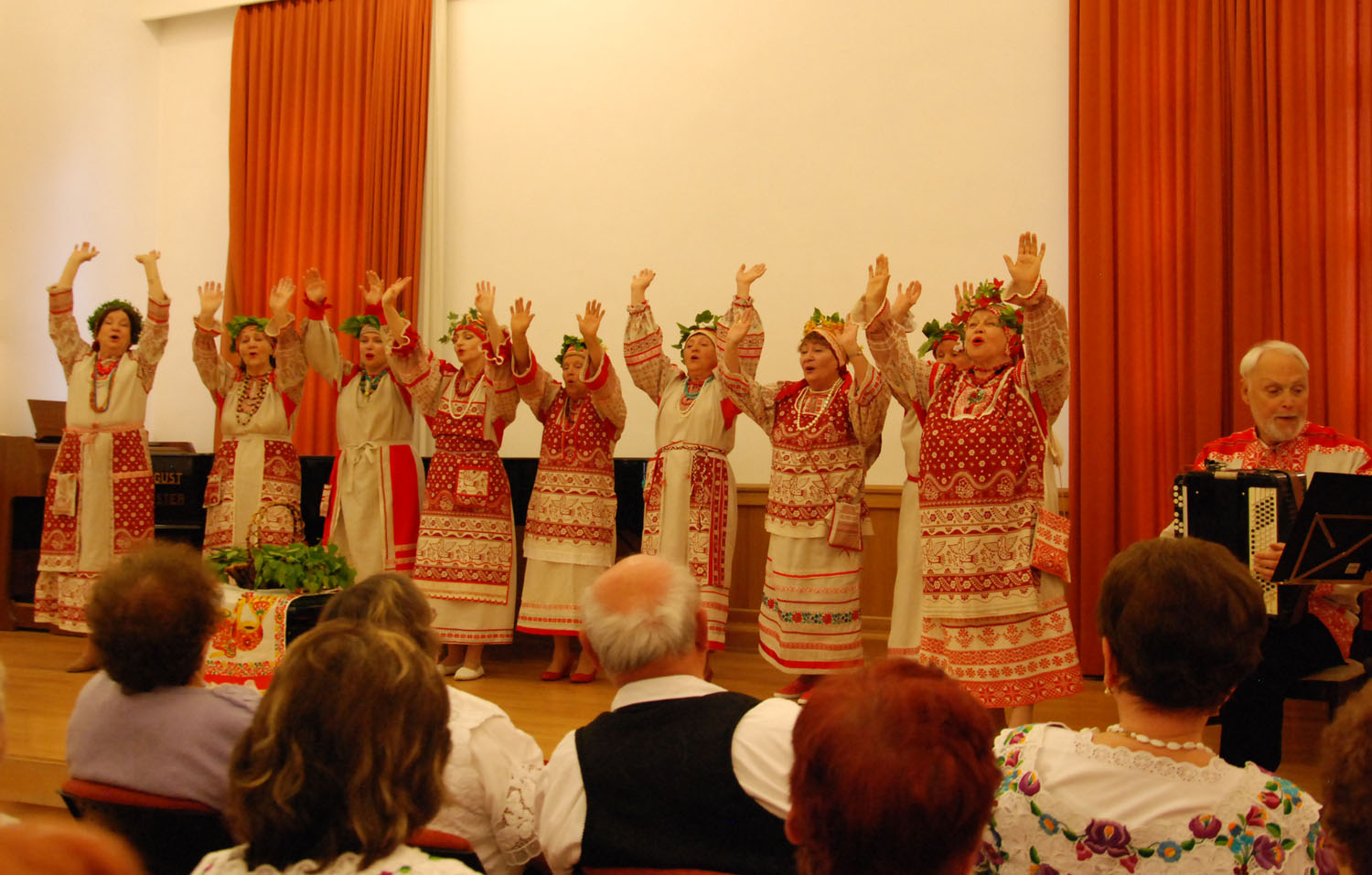 Ezután a Mezei Virágok Népdalkör lépett a színpadra. Magyar népdalcsokruk után előadták a Balalajka – Áll egy ifjú nyírfa a réten kezdetű orosz népdalt, majd a Katyusát oroszul, nagy tapsot kiváltva a közönségből.