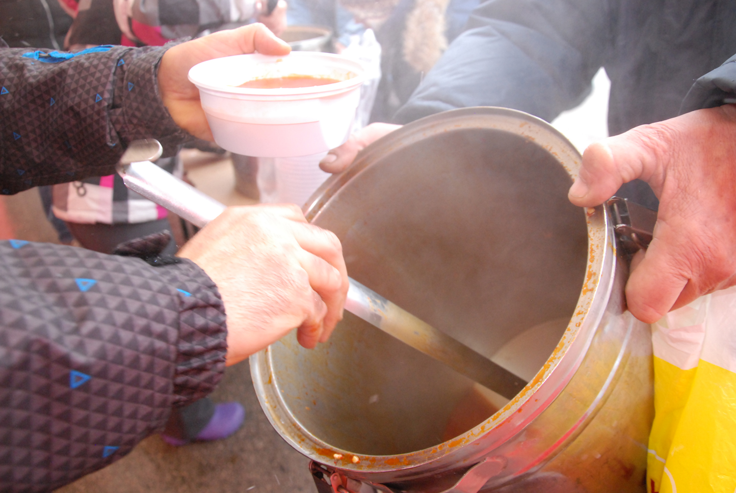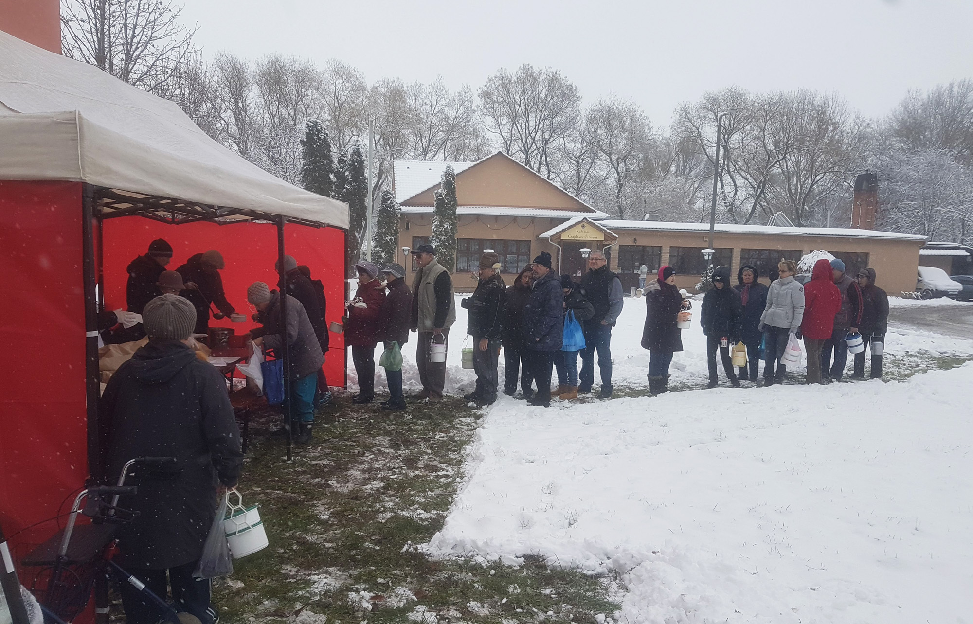 Idén sertésgulyással, buktával és szaloncukorral vendégelték meg az embereket. 1200 adag ételt, szaloncukor-csomagot osztottak szét. A gulyáshoz 19 kiló lisztből és több mint 200 tojásból készítettek csipetkét a Hagyományőrző Egyesület asszonyai segítségével.