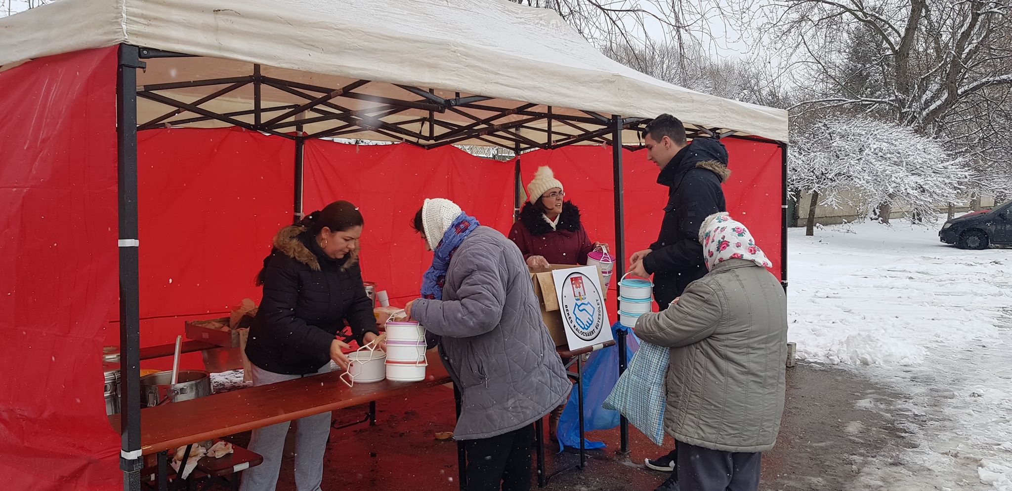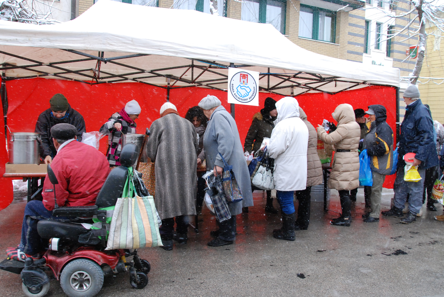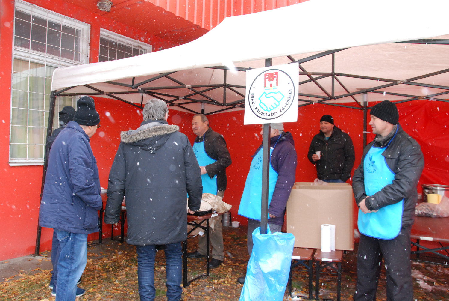 Immár kilencedik alkalommal került sor ételosztásra Kalocsán. Advent harmadik hétvégéjén a szokásos öt helyszínen, a sétálóutcában, a Roma Közösségi Háznál, a lakótelepen a Csajda Csárda mellett, a Diego Áruház parkolójában és a Foktői úton, a laktanya melletti parkolóban. A sátrakban ezúttal a Békés Kalocsáért Egyesület tagjai, segítői osztották szét az ételt, melyhez az alapanyagokat és minden egyéb költséget vállalkozók biztosították. 2014-ben Romsics István (Romesz) vállalakozó kezdeményezésére indult, azóta húsvétkor és karácsonykor várják a város polgárait ezeken a helyszíneken meleg étellel.
