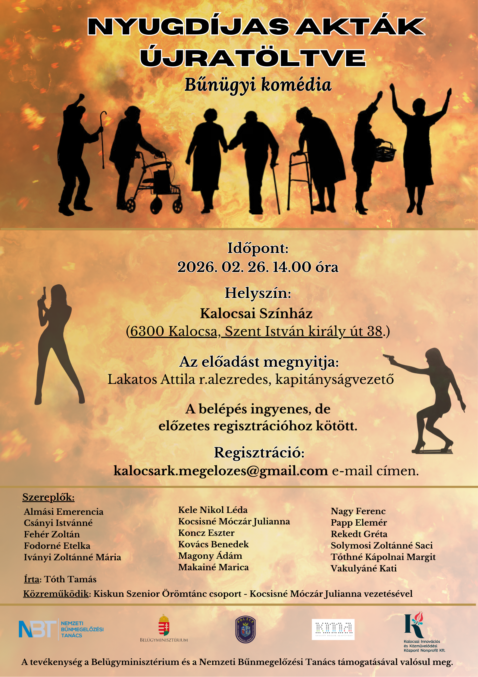 Vajon mire képes egy csapat elszánt nyugdíjas, ha beindul a fantáziájuk? Gyere el, és derítsd ki velünk egy fergeteges bűnügyi komédiában!