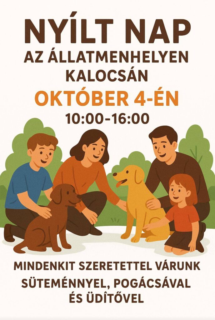 A látogatók nemcsak a menhely mindennapjaiba pillanthatnak be szombaton, hanem testközelből is találkozhatnak az örökbefogadásra váró négylábúakkal. A rendezvény délelőtt 10 órától délután 16 óráig tart, ahol süteménnyel, pogácsával és üdítővel várják a gazdijelölteket, és aki beleszeret valamelyik ártatlanul kidobott kis négylábúba, nyugodtan haza is viheti.