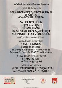 December 7. vasárnap délelőtt a Városi Galériában nyílik meg Szebényi Béla kőszobrász és az 1870-ben alapított Schnábel testvérek cég című kiállítás.