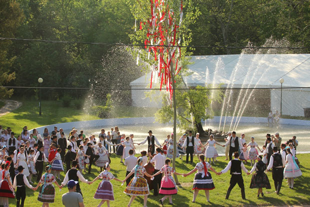 Május elsején 10 órakor kezdünk. A Dózsa szakközépiskola elől vonulnak a néptáncosok az Érsekkertbe, itt lesz a Hódmezővásárhelyi Helyőrségi Fúvószenekar és a testvérvárosok küldöttségei is, és együtt vonulnak a szökőkúthoz, körbetáncolják a májusfát, és három népdalt – Tavaszi szél vizet áraszt, Ha kimék a kalocsai határba és a Nem messze van ide Kalocsa – énekelnek közösen, és szeretnék, hogy ebbe mindenki, aki ott van, bekapcsolódna.