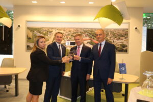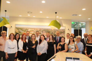 Az OTP kiterjedt nemzetközi hálózatáról, a bank fejlesztési irányairól, eredményeiről, kihívásairól és a helyi fiók átalakításának korszerű megoldásairól a vendégek számára Wolf László adott számadatokban bővelkedő tájékoztatást és kitekintést.