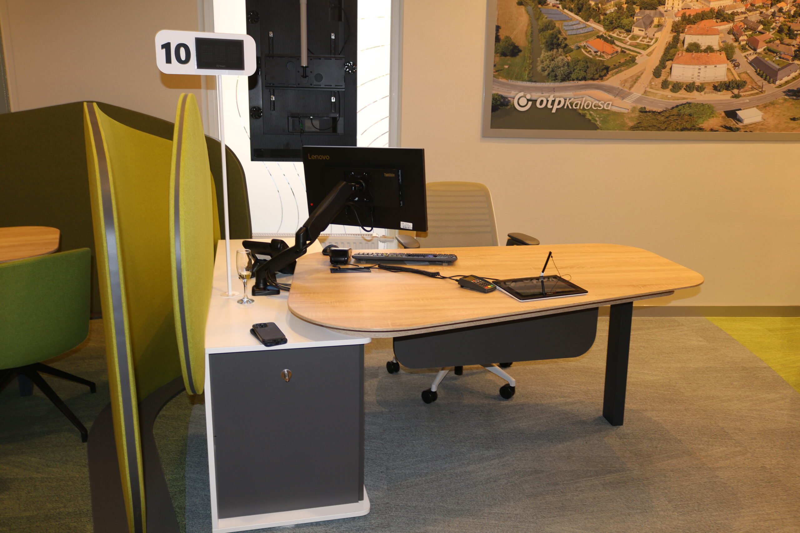Mint elhangzott, a felgyorsult digitalizáció következtében az ügyféligények is megváltoztak, az egyszerűbb tranzakciókat az ügyfelek egyre inkább online végzik. Éppen ezért a bankfiókban a digitális eszközök száma is gyarapodott, így ösztönözve az ügyfeleket az online csatornák használatára és a banki szolgáltatások megismerésére. A fiókban új, innovatív eszközök, interaktív kijelzők, tabletek, digitális aláírópadok is segítik az üzletfeleket. Ezek nem csupán megkönnyítik az ügyintézést, hanem gyorsak és megbízhatóak is.