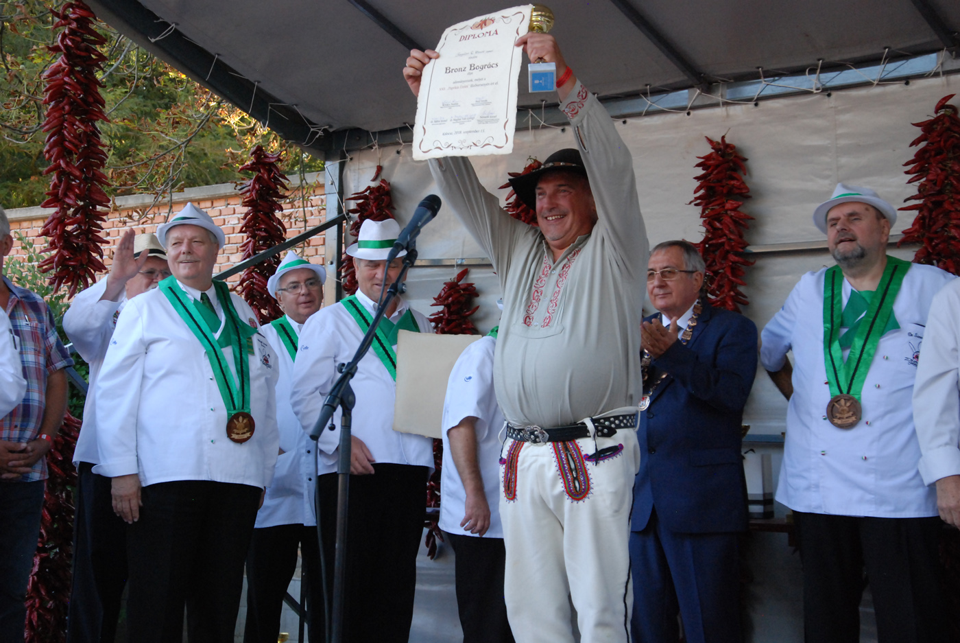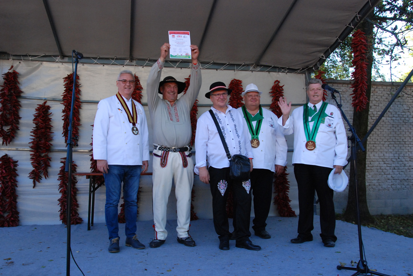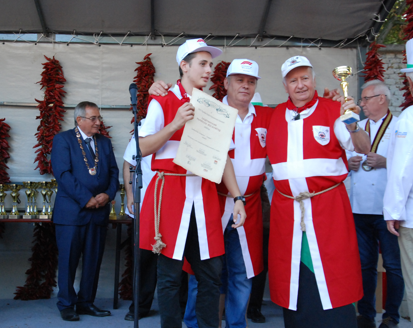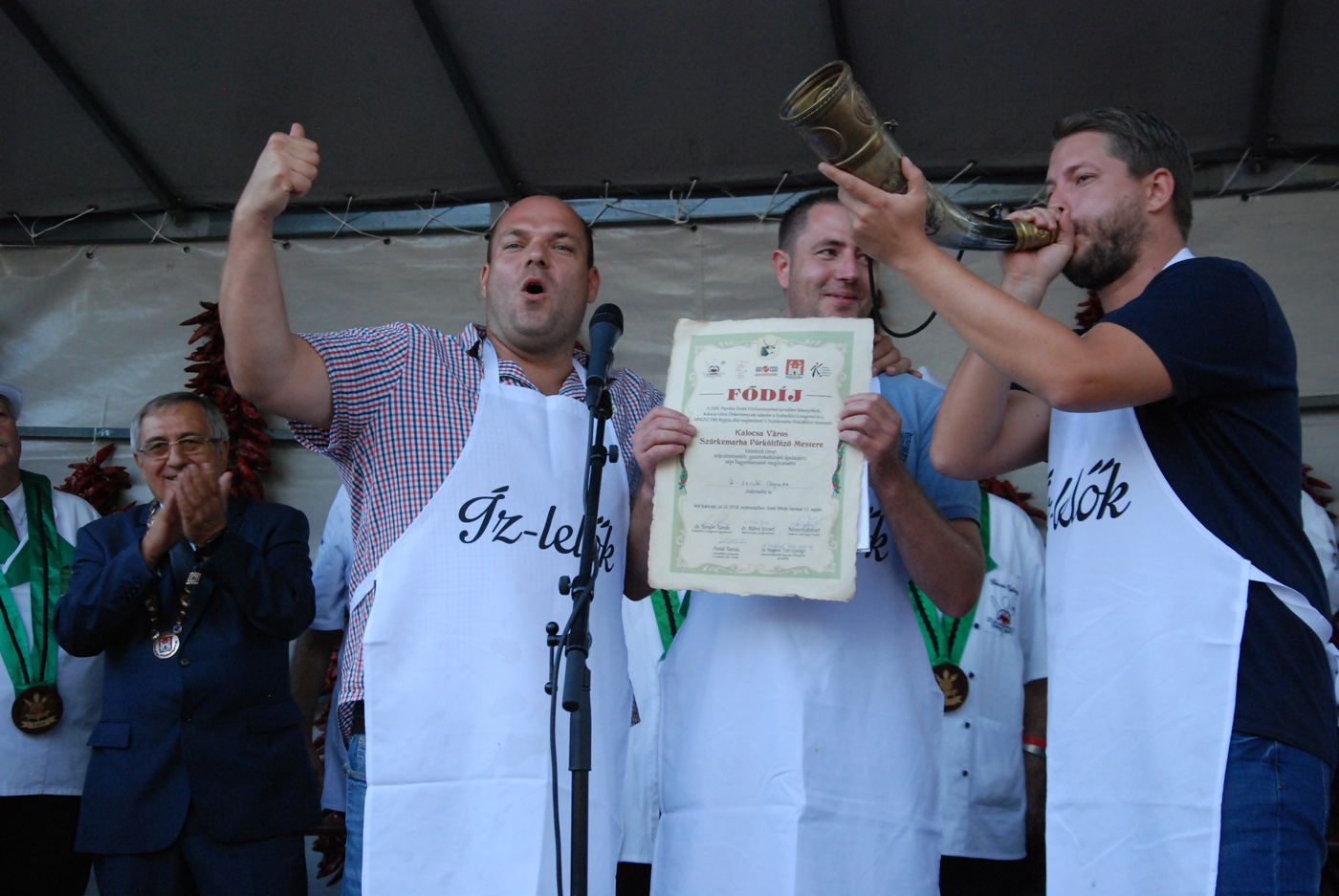 A fődíj nyerte, azaz az idei szürkemarha pörkölt főző verseny legjobb csapata az Íz-lelők. Ők dr. Bálint József polgármestertől a paprikás ételek főzőversenyének az értékelésén vették át a díjat, díszoklevelet és egy gyönyörűen megmunkált szürkemarha tülköt, melyet meg is szólaltattak.