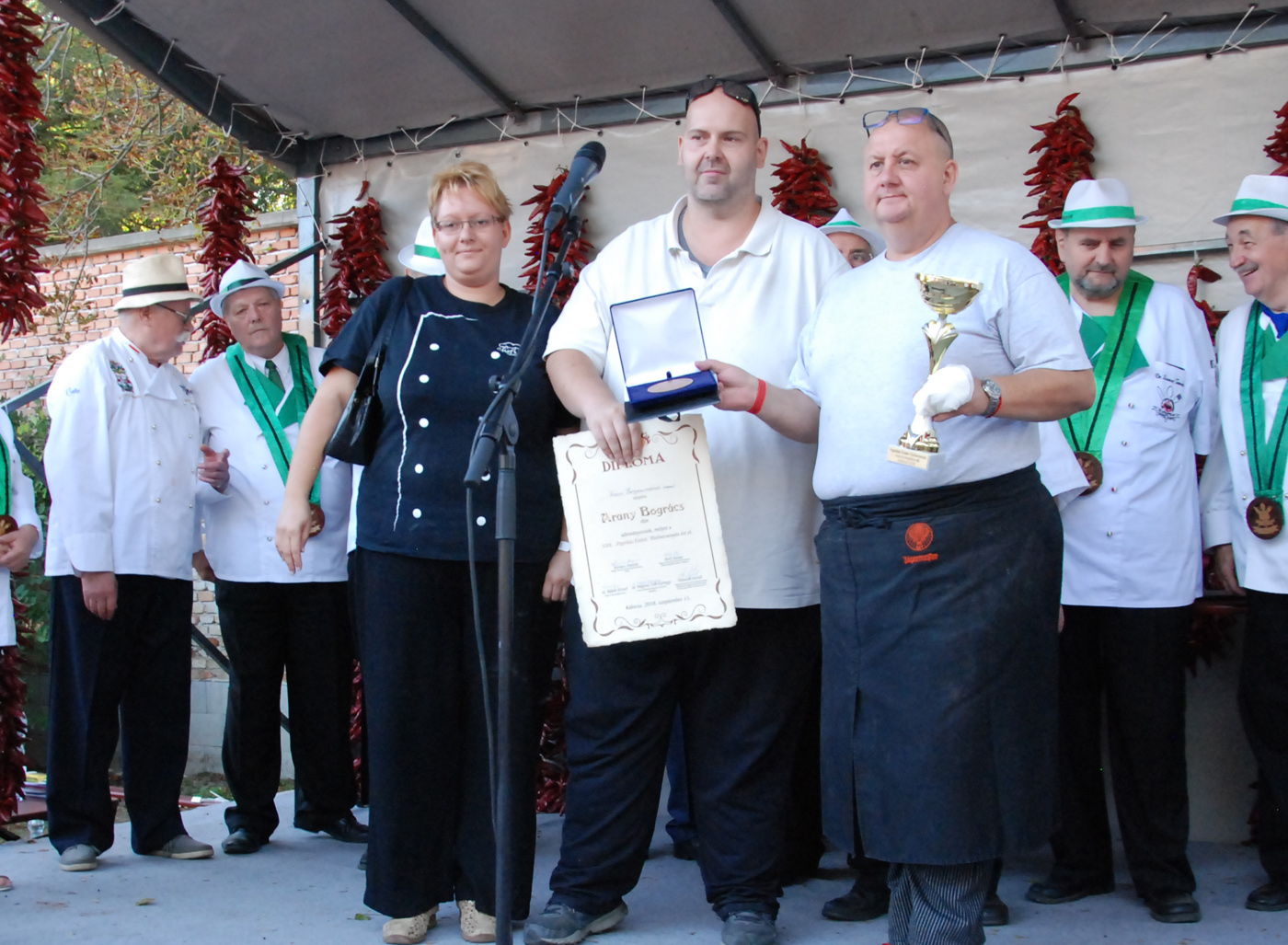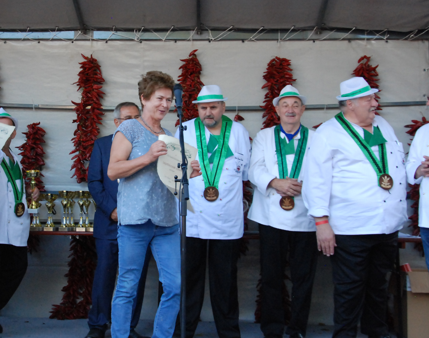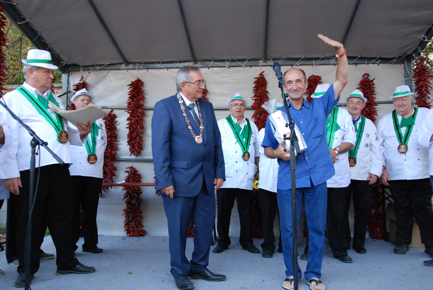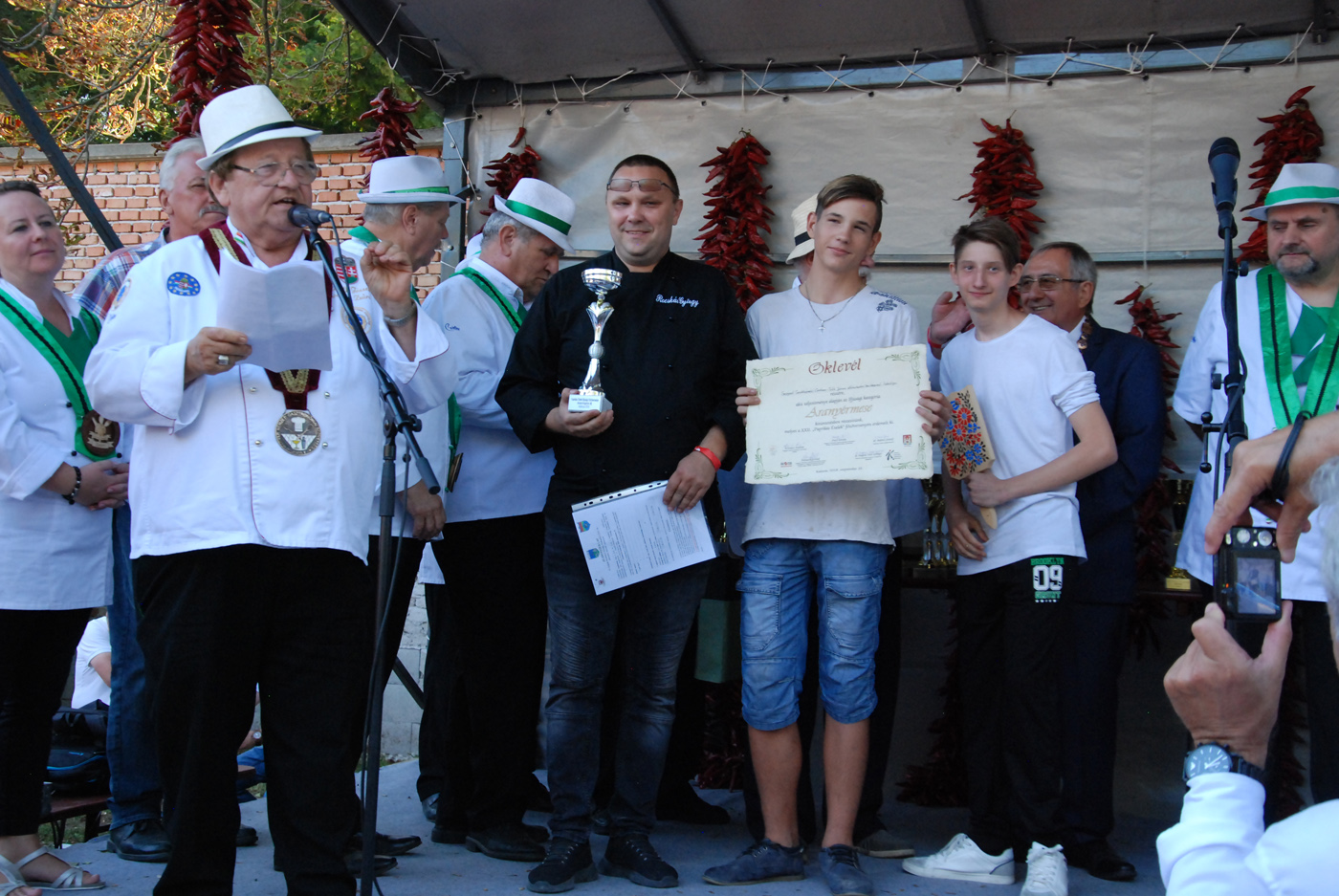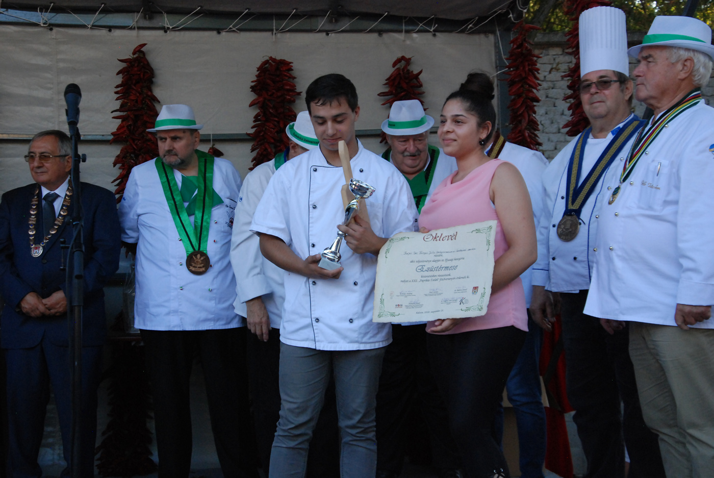 A fődíj nyerte, azaz az idei szürkemarha pörkölt főző verseny legjobb csapata az Íz-lelők. Ők dr. Bálint József polgármestertől a paprikás ételek főzőversenyének az értékelésén vették át a díjat, díszoklevelet és egy gyönyörűen megmunkált szürkemarha tülköt, melyet meg is szólaltattak.